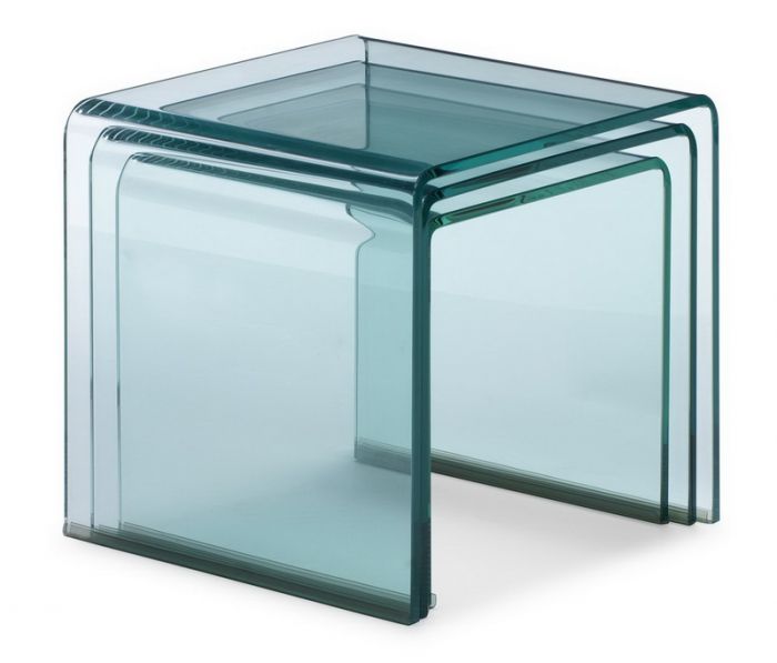 3er Satztische Basic aus gebogenen Glas. Ausführung entweder in Klarglas oder in Schwarzglas in der Glasstärke 12 mm