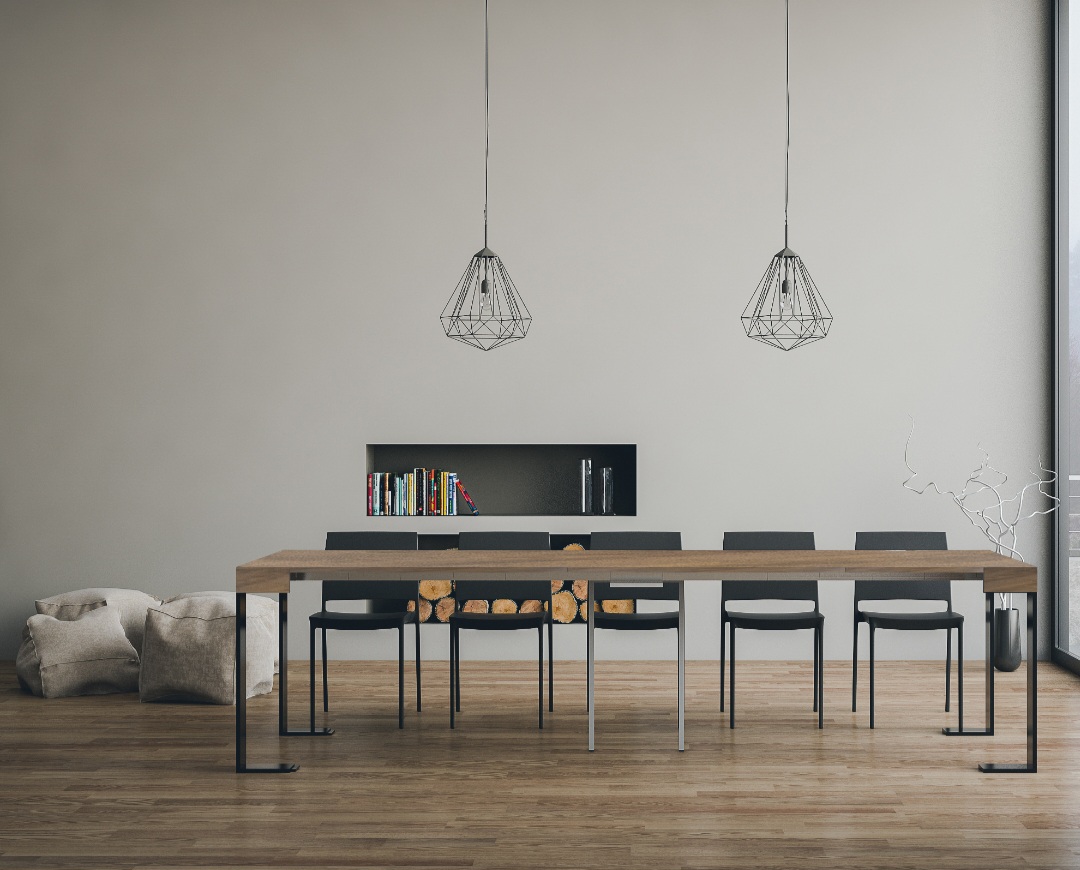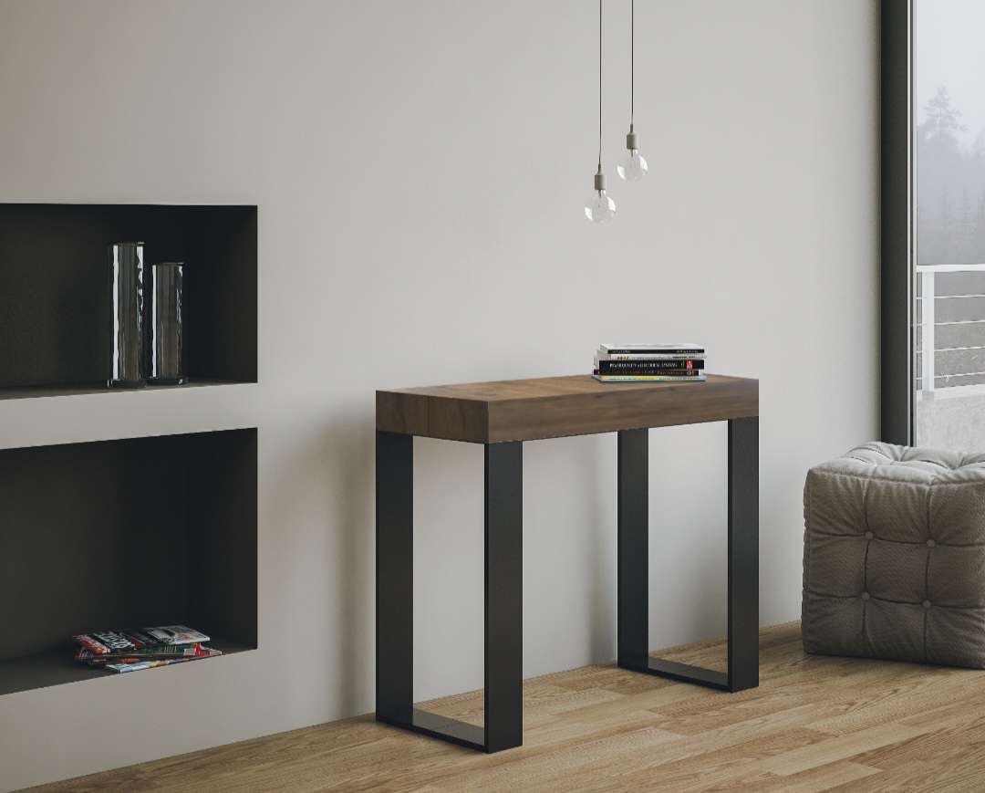 Der ausziehbare Konsolentisch Tecno ist vielseitig und robust und somit die perfekte Ergänzung für jeden Raum im Haus: Eingangsbereich, Küche, Esszimmer, Wohnzimmer oder Flur.
