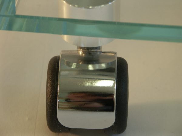 Glas Rollpodest design Paul Snajdar aus Klarglas mit hochertigen Zinkdruckguss-Doppelrollen welche besonders leise rollen und Parkettauglich sind. Belastbar bis 30-100 Kilo ( abhängig von der Glasstärke und der Breite des Rollpodestes ). Glasstärke 10 mm, aber auch in 12 mm und 15 mm lieferbar. Das Rollpodest ist lieferbar in allen Glassorten egal ob rund, eckig oder Quadratisch. Die Preise erhalten Sie auf Anfrage.